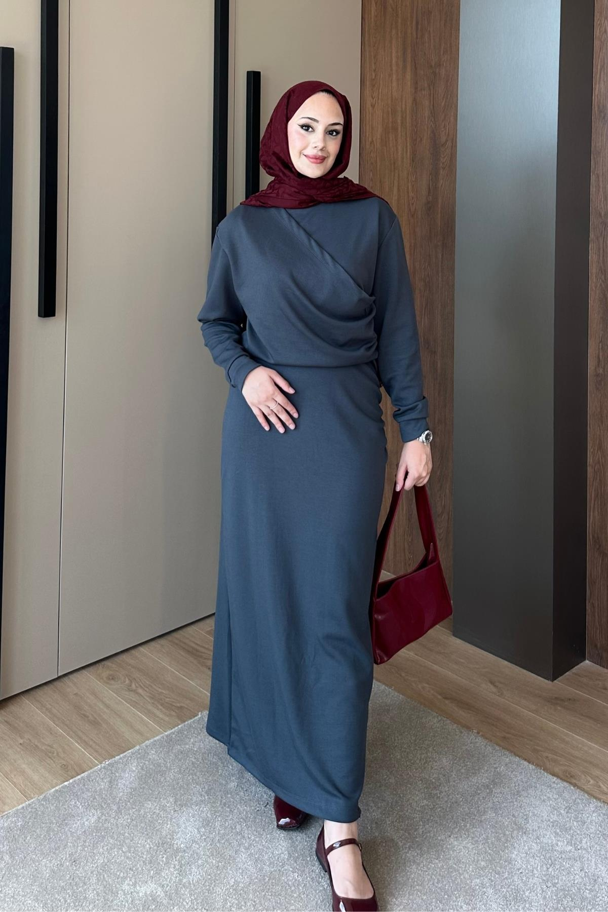 ELBİSEOysho Büzgülü Elbise 1108 Antrasit