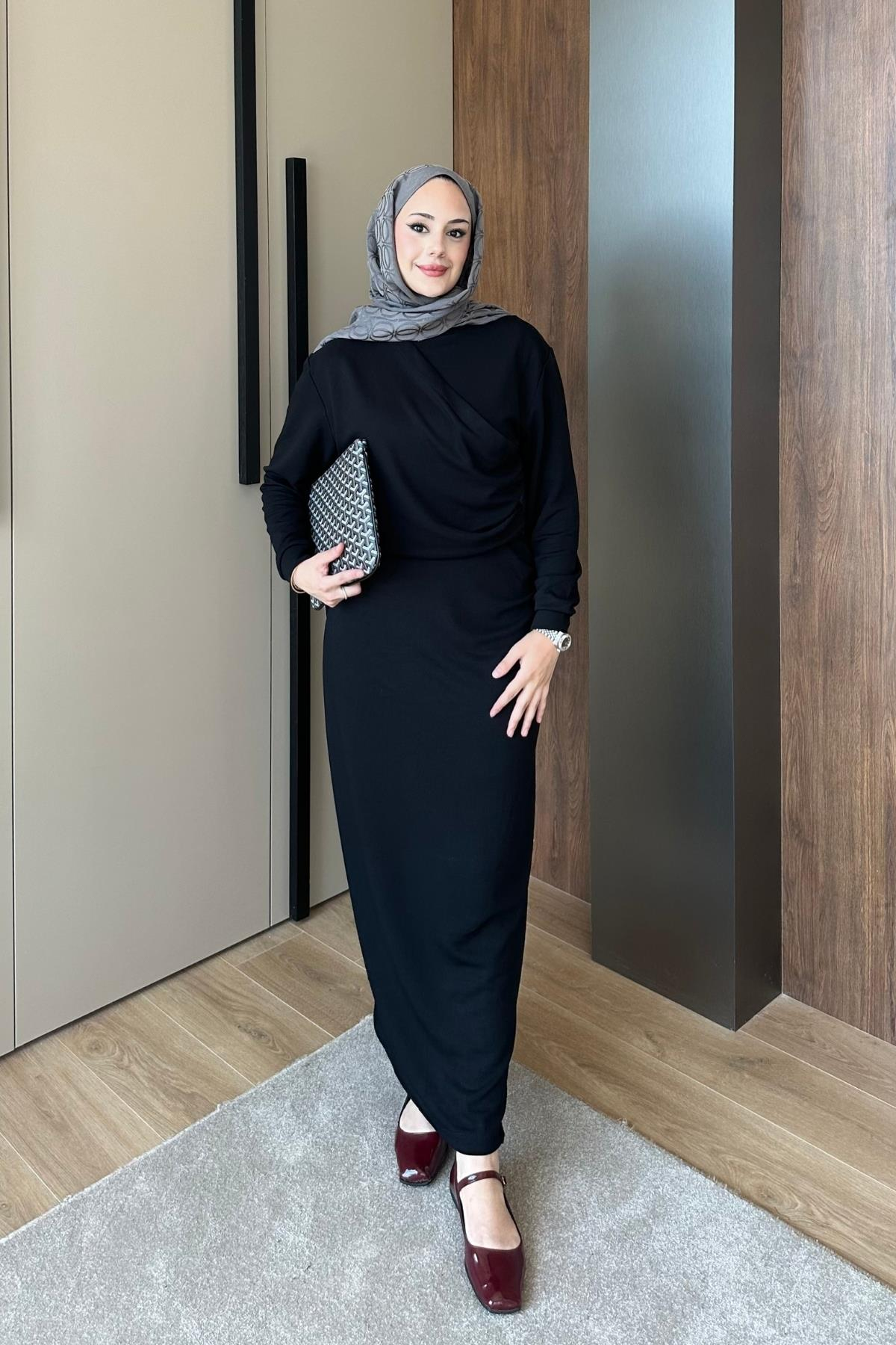 ELBİSEOysho Büzgülü Elbise 1108 Siyah