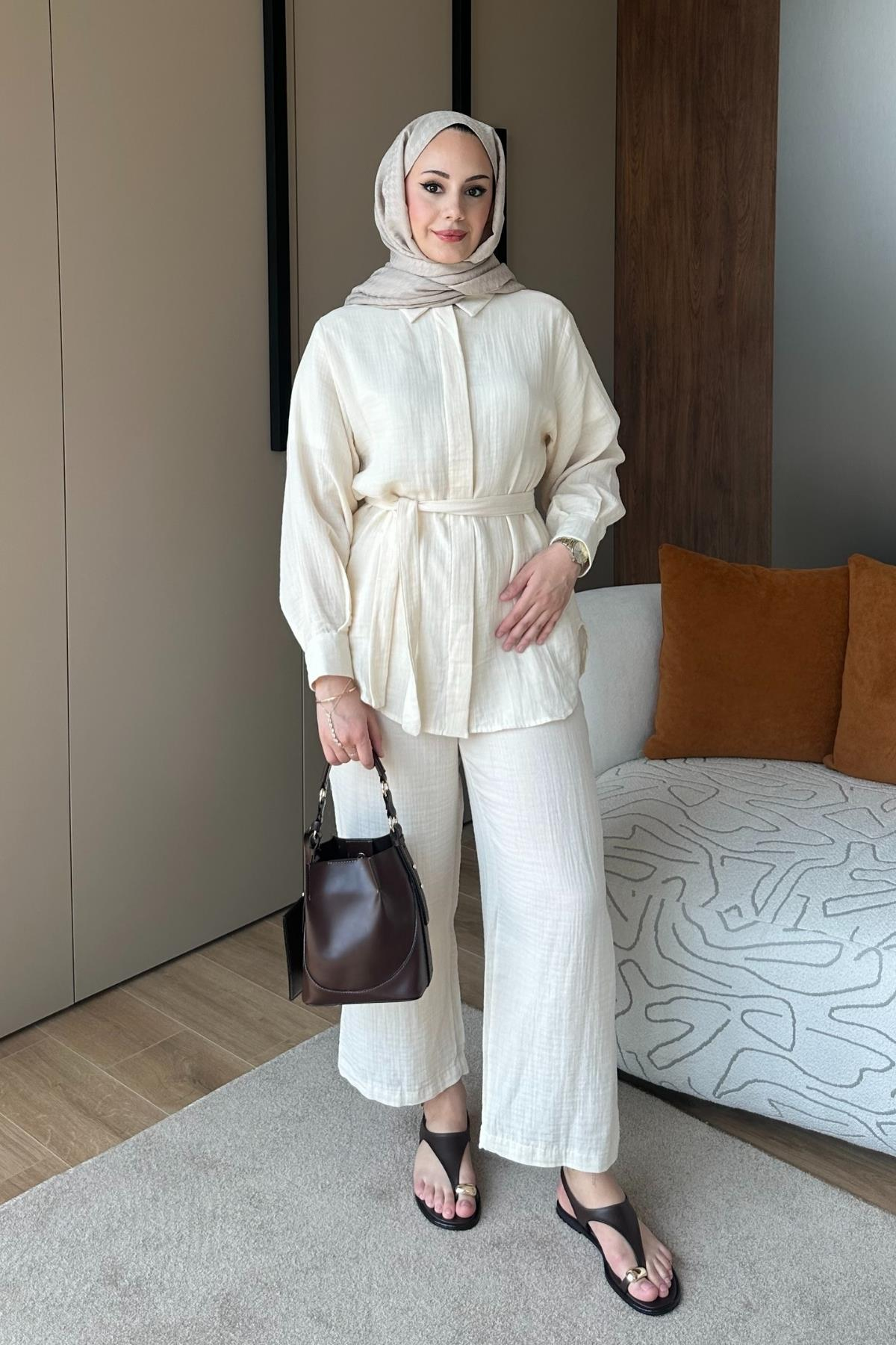 Pantolonlu Takım 1104 Ekru