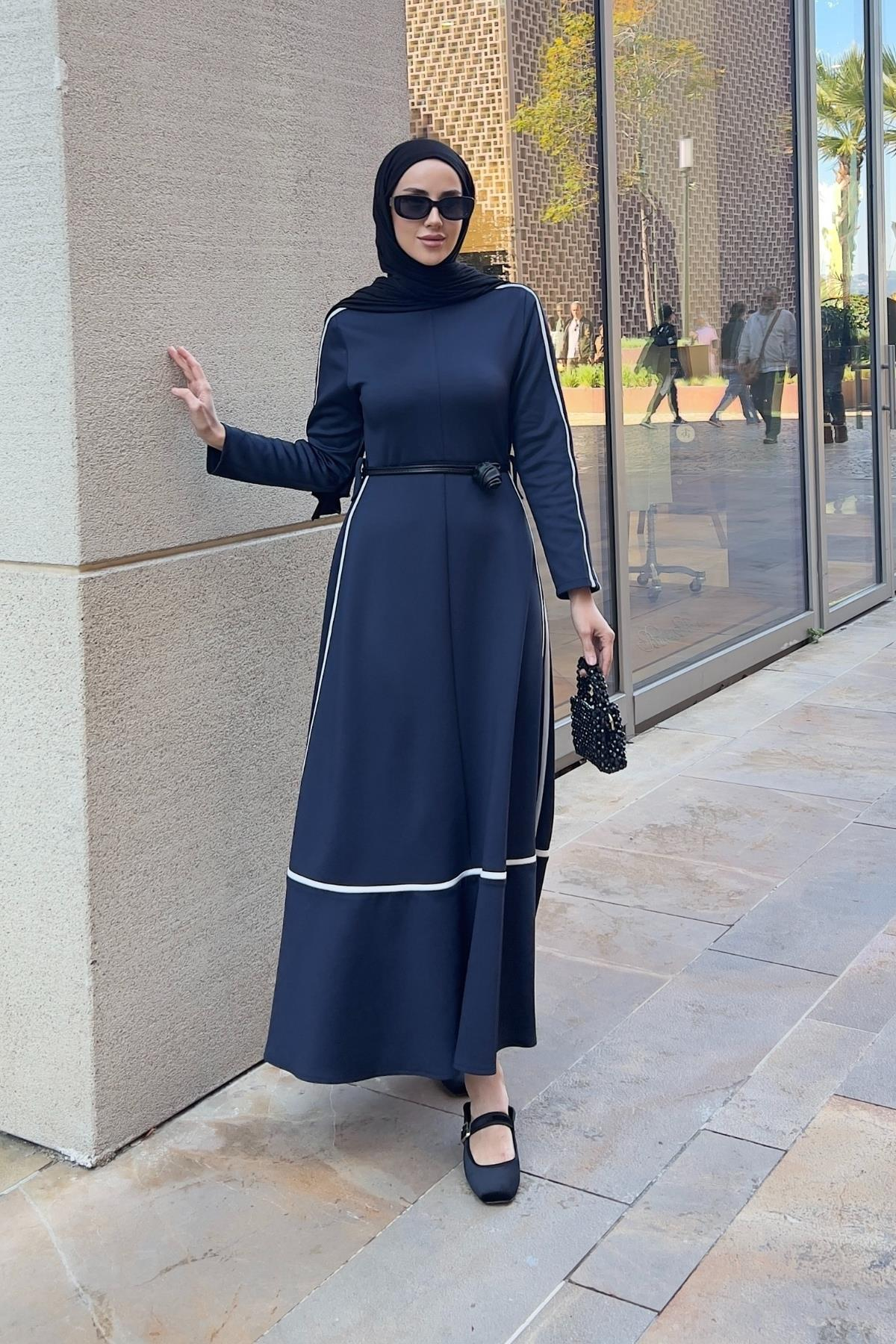 ELBİSEŞeritli Scuba Elbise 51016 Lacivert
